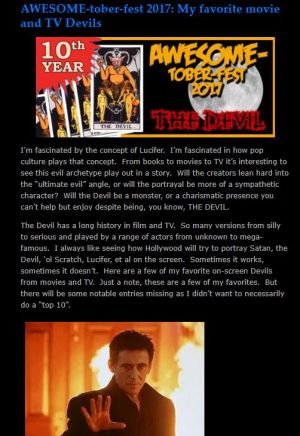 I’ve always been fascinated by the depiction of the Judeo-Christian “Devil” or “Satan” in popular culture. I presaged this as a topic for AWESOME-tober-fest back in 2017 when I did an article for that year’s final week of AWESOME-tober-fest on my favorite movie and TV devils.
