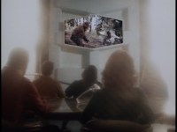 Steve tracks Bigfoot to a cave where it disappears. But Steve TEARS DOWN PART OF THE MOUNTAIN to find a hidden door.  How’d he know to look there?  Then he has to walk through this amazing gizmo.  I’m not even sure what that is.  A revolving ice tunnel?  As soon as Steve walks in he collapses to the floor.  All I know is it looks exactly like the ice tunnel from the Misfits of Science pilot.  However, they show that tunnel in this episode several times.  You get several LOOOONG looks.  I totally get that, they should be proud.  It’s an amazing set piece.