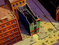 We are on a movie studio lot so there are several scenes of the guys hanging out on different movie sets. Here Winston, Ray, and Slimer chill out on a western set.
