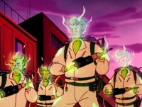 Oh yeah, Slimer tags along on the trip and once in LA the first thing he does is chase Carmen Miranda? WHAT?